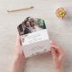 We absolutely loved how these wedding invitations turned out! We went with the standard paper stock, and it is plenty thick. One thing we probably would have changed is not doing the big white block on the front for the recipient address. Our invitations are a dark green. When we went to Staples to look at the options for labels, we saw some cute kraft stock colored ones that would have looked really cute on the dark green rather than using matte clear labels within the white block if that makes sense. They are still adorable though. I just fancied up my matte labels with a little leafy design and pretty font for the names so I feel like it helped it look more cohesive. Also, if you’re worried that they look pricey, make sure to put your quantity in because the price goes down significantly. We found this to be a super affordable, efficient and unique option that checked all of our boxes. When folded, they are the size of a little Google home screen see pictures. Perfect! Colors look exactly as we expected and the printing quality is clear and consistent.