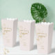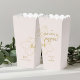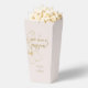 Delight wedding guests with a surprise midnight snack. This lovely pale blush pink wedding favour popcorn box features couple names in a contemporary set of dark faux gold fonts, alongside elegant and modern floral faux gold outlines. This item forms part of a full wedding suite which includes matching stationary items.