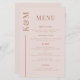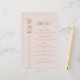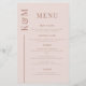 Elegant wedding dinner menu list featuring simple clean line with the couple's initial on the side. The background is blush pink.