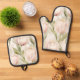 Blush Pink Cream Tulips Floral Bridal Shower Oven Mitt & Pot Holder Set