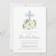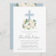 Blush Pink Cross with Cream Florals, Boy Baptism Invitation