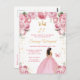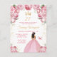 This elegant and glamourous birthday party invitation features a beautiful princess with dark skin in a blush pink ball gown. The text combines handwritten script and modern sans serif fonts for a classy and sophisticated look. The floral arrangements, butterfly and gold confetti create the perfect blend of rustic and chic.