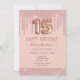 Girly pink diamond drips, millennial pink background, with fancy script name typography. Faux rose gold 15 balloon text. Great for quince celebrations. All text is adjustable.