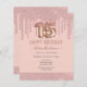Girly pink diamond drips, millennial pink background, with fancy script name typography. Faux rose gold 15 balloon text. Great for quince celebrations. All text is adjustable.