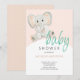 Blush Pink Elephant Girl Watercolor Illustration Invitation
