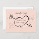 Simple sweet black calligraphy style hearts and an elegant font on a blush pink background and the happy couples names and date inside of a romantic heart with cupid's arrow through it. Easy to customise, just add your own details.