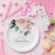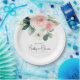 A beautifully feminine baby shower party plate featuring a bouquet of watercolor roses and eucalyptus and trailing greenery in soft blush pink, white, green and blue-green. Trendy type face pairings include modern handwritten script and elegant serif. This item is a great choice for the mother-to-be who is expecting a baby girl. Personalise the easy to use text template with the guest of honour's name. Available in 2 sizes: shown here in the larger 9-inch diameter size, also available in 7-inch diameter.