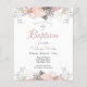 Girly white floral and millennial pink script typography. Baptism floral celebration budget invitations. You can add photos to the back or additional text if needed.