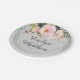 These elegant wedding plates feature blush pink flowers accented with green leaves and aqua willow branches. The bride and groom's names are boldly featured on top of a lighter coloured ampersand. The design compliments my "Blush Pink Rose Floral Bouquet" wedding invitations. The feminine floral accents would work perfectly with any outdoor, rustic, shabby themed bridal shower or rehearsal dinner.