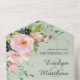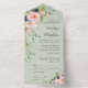 Blush Pink Floral Bouquet on Sage Green Wedding All In One Invitation