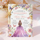 Celebrate your daughter's special day with our enchanting Quinceañera invitation featuring a whimsical design that captures the essence of a fairy tale. This beautiful invitation showcases a young girl in a stunning lavender gown standing beneath an elegant floral archway, surrounded by delicate butterflies and vibrant blooms. The soft pastel colours and intricate watercolor details create a dreamy and magical atmosphere, perfect for this milestone event. Personalise the text to include all the essential details of your celebration, and let this charming design set the tone for an unforgettable Quinceañera.