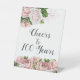 Blush Pink Floral Cheers to 100 Years Script Pedestal Sign
