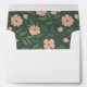 Add a special touch to your wedding invitation mailing with custom printed envelopes. These envelopes have a simple blush pink flower illustration on the front and a coordinating floral pattern against a dark green background on the inside. The envelope flap is ready to be customised with your name and return address.