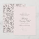 The Affair reply card has a traditional layout with delicate script and classic fonts. The design has a vintage rose pattern on the back, a blush paper background, and classic style fonts. Soft blush pink and grey, with beautiful vintage botanical inspired details.