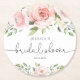 Blush pink floral eucalyptus bridal shower Round Paper Coaster.