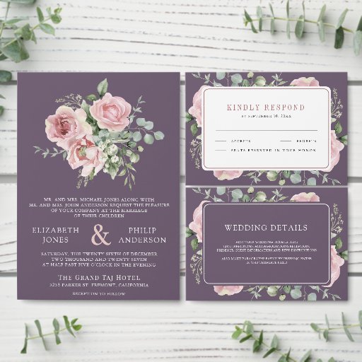 Blush Pink Floral Eucalyptus Dusty Purple WeddingDesigned by Shabbir D