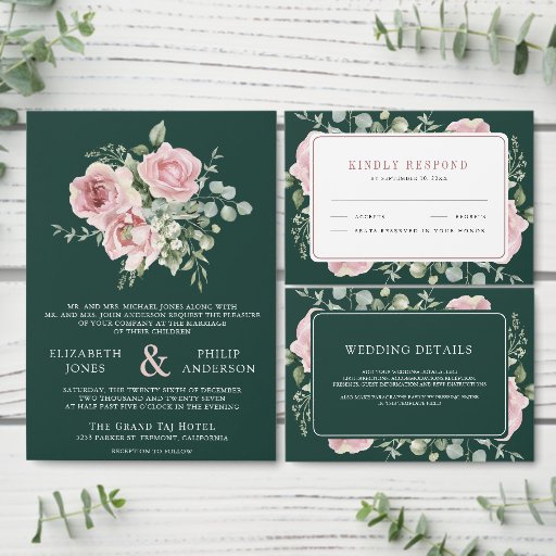 Blush Pink Floral Eucalyptus Emerald Green WeddingDesigned by Shabbir D