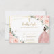 Blush Pink Floral Gold Baptism Christening Reply RSVP Card