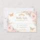 Blush Pink Floral Gold Butterflies Quinceañera RSVP Card