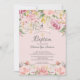 Beautiful pink floral with gold leaves & cross baptism invitation with a coordinating floral back for an extra special touch.