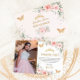 This chic Quinceañera thank you card features delicate watercolor blush pink floral, soft greenery foliage and blush pink butterflies. Personalise it with your details easily and quickly, simply press the customise it button to further re-arrange and format the style and placement of the text. Also great for Sweet 16, 18th birthday, bridal shower, baby shower and many more occasions! (c) The Happy Cat Studio