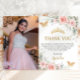 Blush Pink Floral Gold Crown Quinceañera Photo Thank You Card