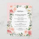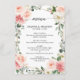 Elegant Blush pink / peach spring floral botanical wedding menu featuring a bouquet of soft pastel watercolor roses, peonies and hydrangeas in shades of blush pink, peach and cream with lush green botanical leaves and eucalyptus leaves with gold geometric frame. Please find more matching designs and variations from my "blissweddingpaperie" store. And feel free to contact me for further customisation or matching items.