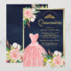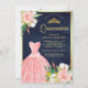 Blush Pink Floral Gown Navy Blue Gold Quinceanera Invitation