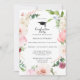 Elegant watercolor blush pink flowers and green foliage frame, graduation party invitation. Font style and colour can be customised. Back of card features chic pink watercolor stripe pattern.