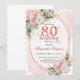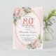 Blush Pink Floral Greenery Gold Glitter 80th Bday Invitation
