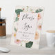 This is an elegant and modern "Please sign our guest book" table pedestal sign for a wedding. The design features bohemian and pretty pink and peachy florals, matching soft blush and creamy background colours with a script font. Easily update the details on the sign to suit your needs using the template provided. Please contact the designer for any questions or issues regarding this design or for any matching products.