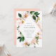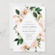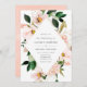 Watercolor floral wedding invite with tones of blush pink in a geometric frame.
