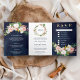 Blush Pink Floral Magnolia Cotton Navy Wedding Tri-Fold Invitation