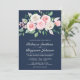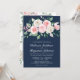 Blush Pink Floral Navy Blue QR Code Wedding Invitation