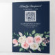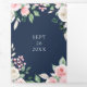 Blush Pink Floral Navy Blue QR Code Wedding Tri-Fold Invitation