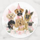 This adorable design features illustration of a collection of pretty puppies surrounded by gorgeous blush pink flowers and delicate watercolor greenery