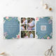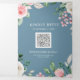 Blush Pink Floral QR Code Dusty Blue Wedding Tri-Fold Invitation