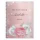 Blush pink floral silver glitter dust name script notebook