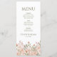 Impress your guests with this elegant blush pink floral watercolor wedding menu. Featuring a romantic arrangement of blush watercolor flowers and soft greenery, this design beautifully complements garden, rustic, or romantic-themed weddings. The menu showcases a balance of refined typography and delicate floral accents, making it both functional and visually stunning. Fully customisable to include your curated dishes and beverages, this menu adds a sophisticated touch to your reception tablescape.