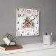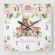 Blush Pink Floral Woodland Animals Girl Nursery Square Wall Clock