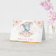 This adorable folded thank you card features an adorable baby elephant and feminine blush pink flowers.