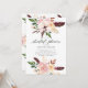 Beautiful watercolor pink floral & feathers bridal shower invitation with a coordinating floral back.