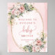 Blush Pink Flowers Gold Glitter Welcome Baby Sign
