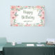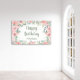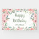 Cute and stylish "Happy birthday" banner for your springtime or summer birthday party celebration. Beautiful blush pink watercolor flowers and sage green leaves on a white background with a whimsical script font that just pops! Personalised with the name of the guest of honour.