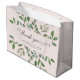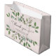 These trendy botanical retail boutique shopping bags feature a frame of abundant watercolor green leaves and a few tiny berries on a trendy, blush pink background. The words "thank you" appear in elegant, swirly calligraphy, and there is room to add your company or small business name and contact info. This is a bag your customers and clients will want to carry long after the shopping trip is done!