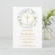 A decorative laurel garland, gold rings, and cross sit above your special baptism or christening invitation information on this elegant design.