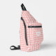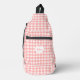 A pretty, blush pink gingham check pattern on a customisable cross body sling bag. This classic design is always in style! This bag has a heart monogram design area where you can personalise with a name, monogram, initials or any text. Great for travel or a day out. It's a cute and unique gift for her!
