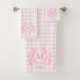 Blush Pink Gingham Floral Crest Monogram Bath Towel Set