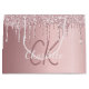 A blush pink faux metallic looking background with faux glitter drips, paint dripping look. Personalise and add a name and monogram initials. The text: The name is written with a modern hand lettered style script.Perfect for birthdays, baby showers and bridal showers.