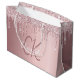 Blush pink glitter drips monogram script elegant large gift bag